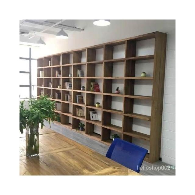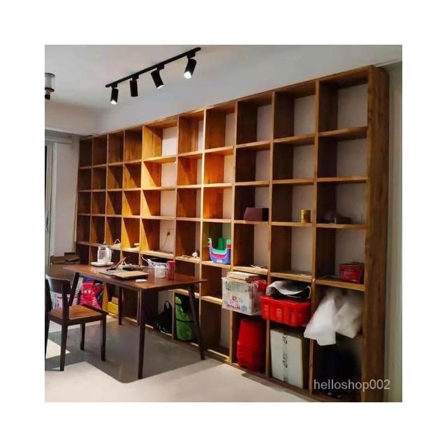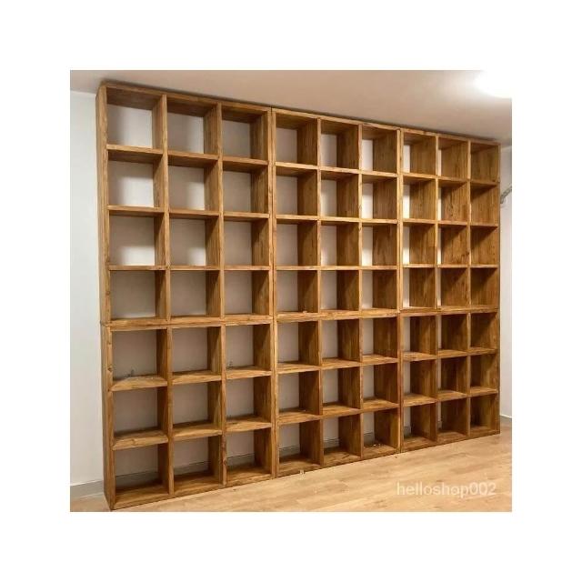 老榆木書架定製實木落地滿墻書櫃子隔斷弔櫃格子置物架架子 層架 書架 置物架 收納架