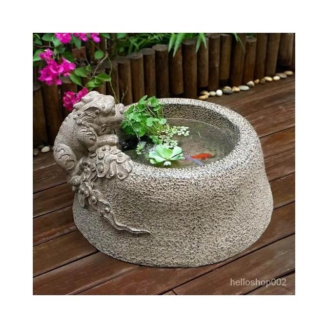 廠傢直銷 庭院落地流水擺件造景佈置戶外花園陽臺小魚池傢庭仿石槽古法魚缸