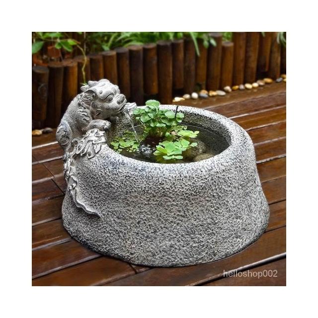 廠傢直銷 庭院落地流水擺件造景佈置戶外花園陽臺小魚池傢庭仿石槽古法魚缸