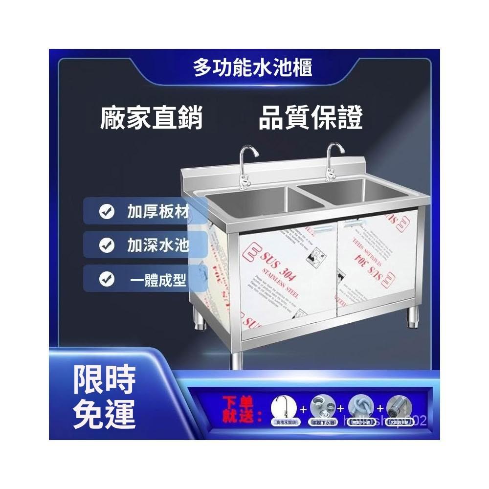 可開發票 工廠直銷 全套304多功能特厚不銹鋼水池簡易戶外廚房雙水槽一體不水池櫃