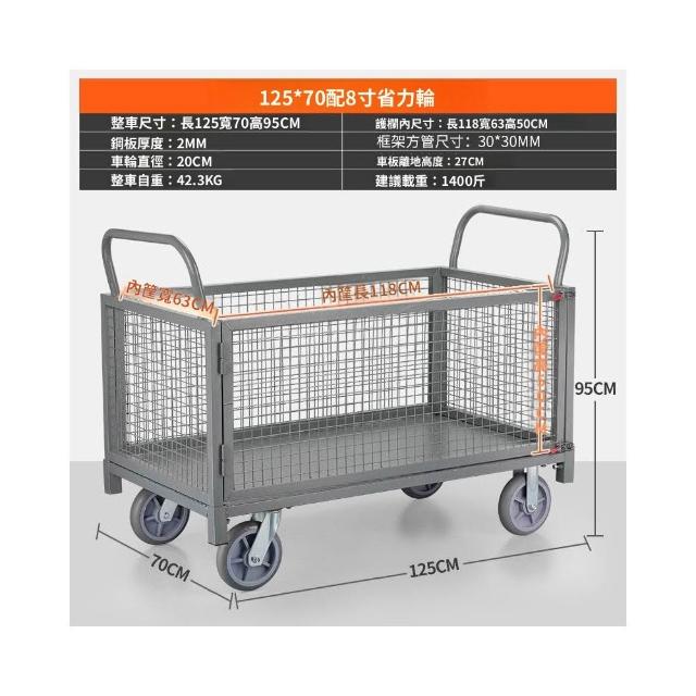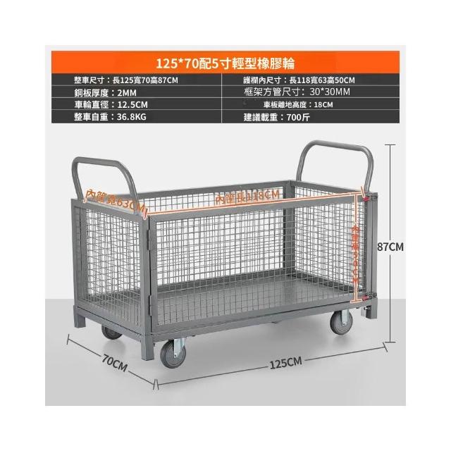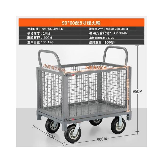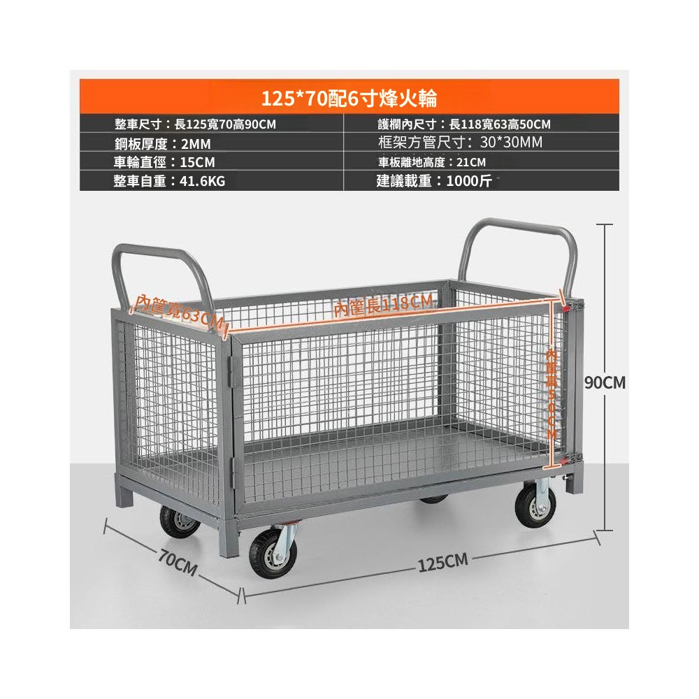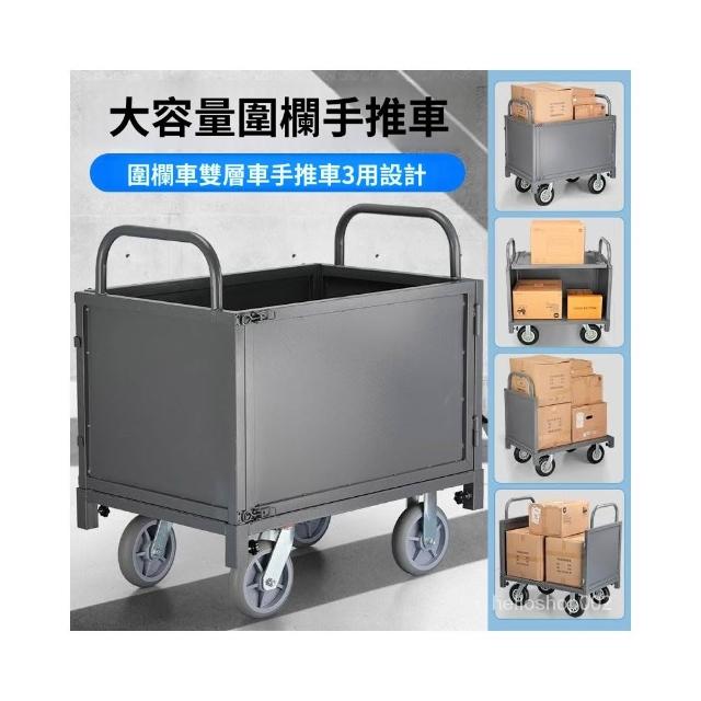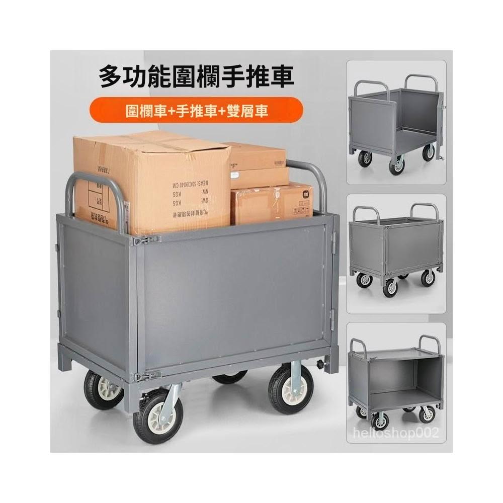 工廠直銷 圍欄手推車倉庫揀貨車網格拖車拉貨擺攤小推車搬運車帶護欄推車