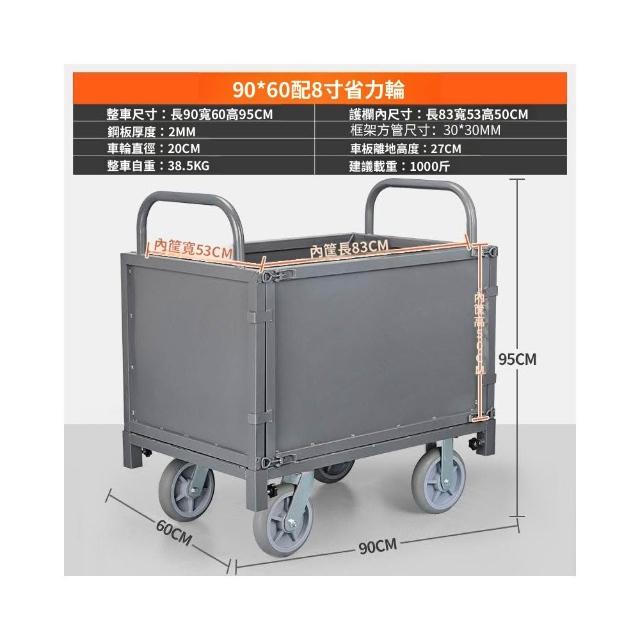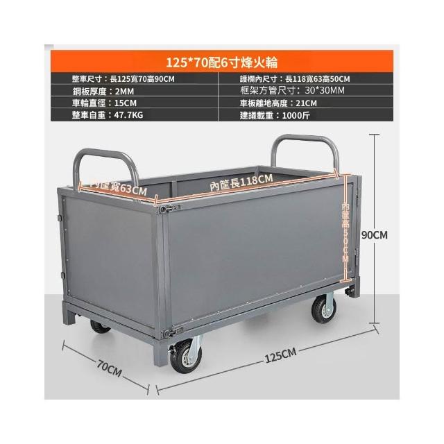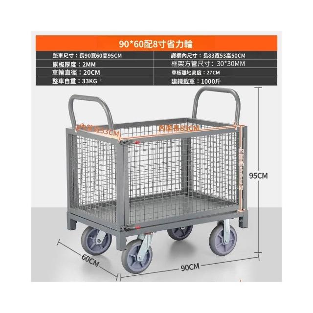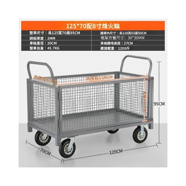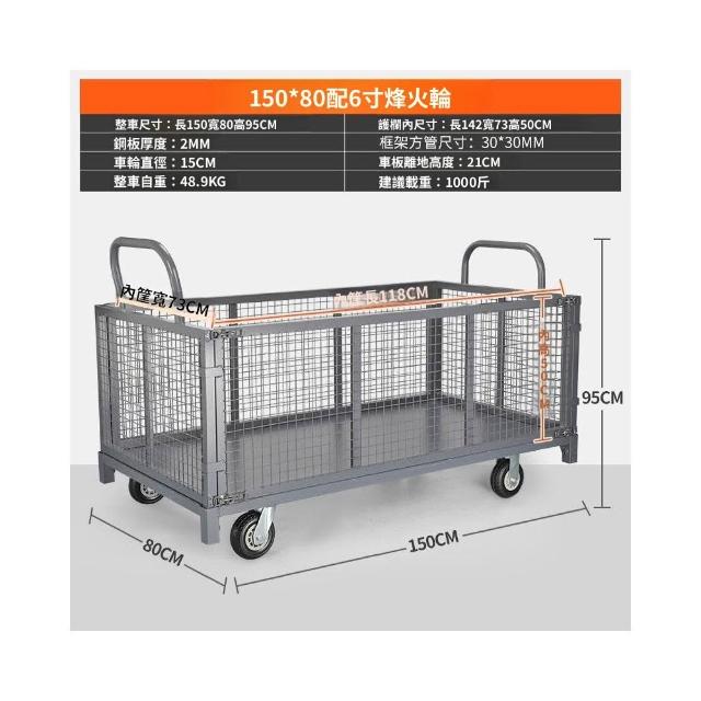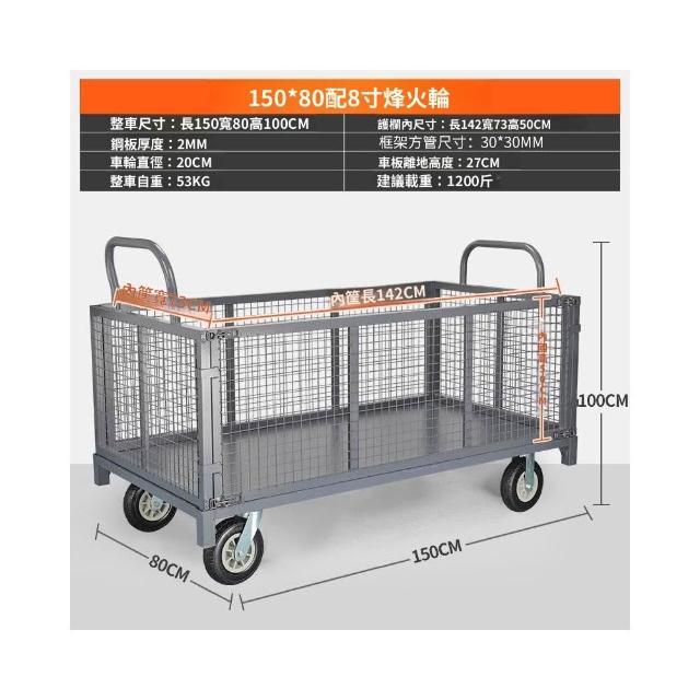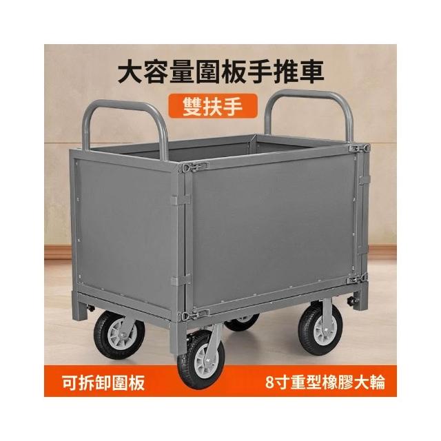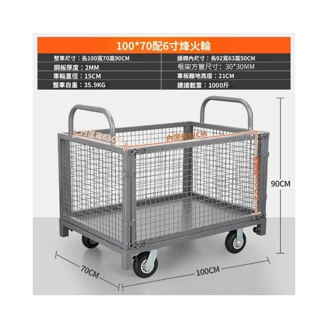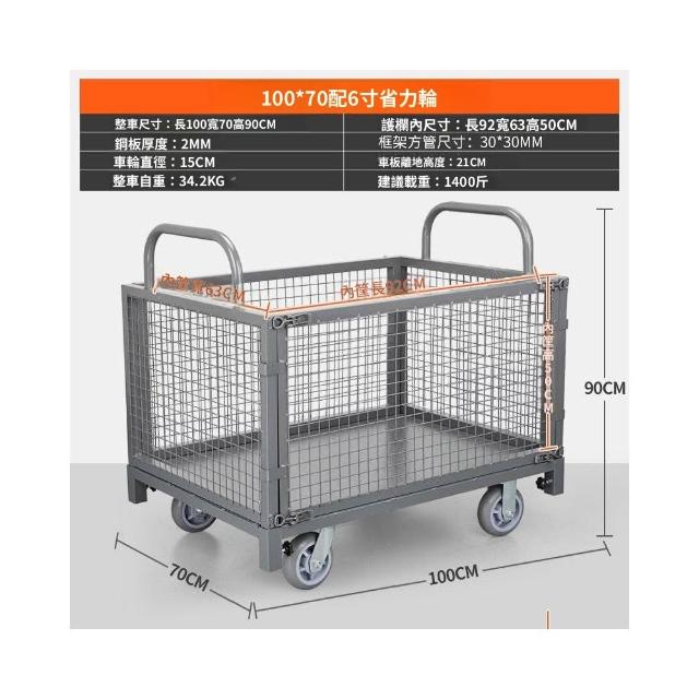 工廠直銷 圍欄手推車倉庫揀貨車網格拖車拉貨擺攤小推車搬運車帶護欄推車