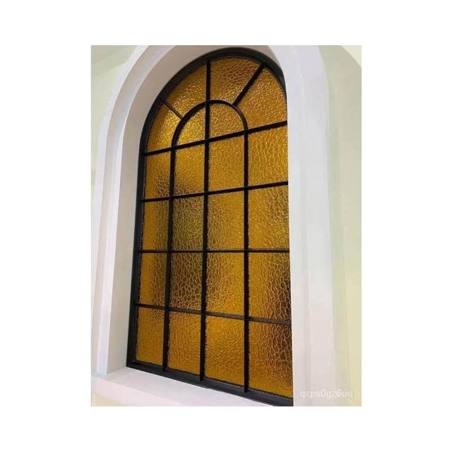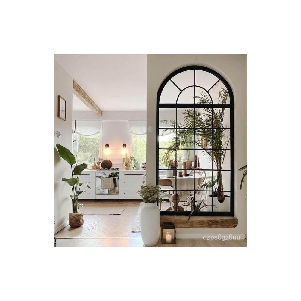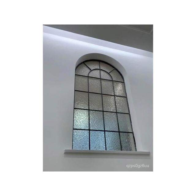 美式複古鐵藝假窗戶室內閣樓裝飾固定玄關長虹玻璃隔斷拱形窗定製