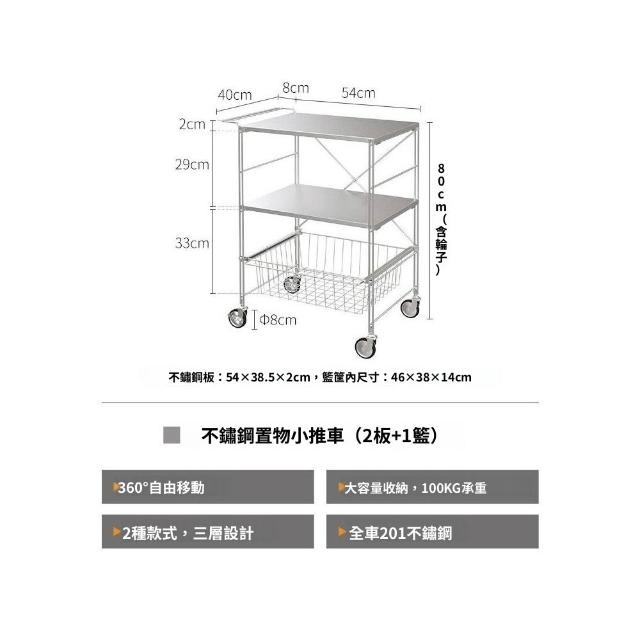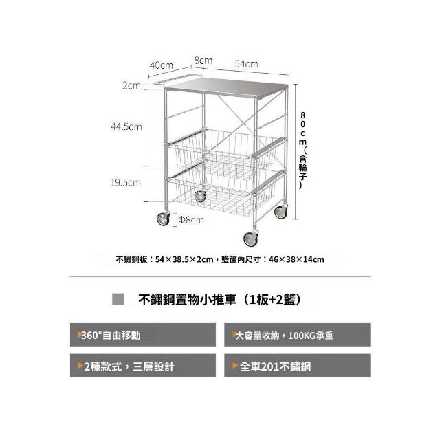 不銹鋼餐車 可移動三層小推車 廚房多功能置物架 傢用零食收納籃