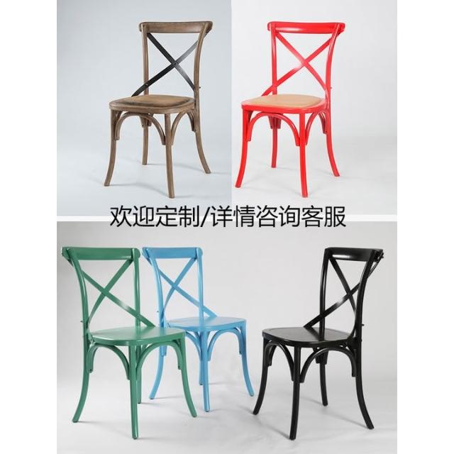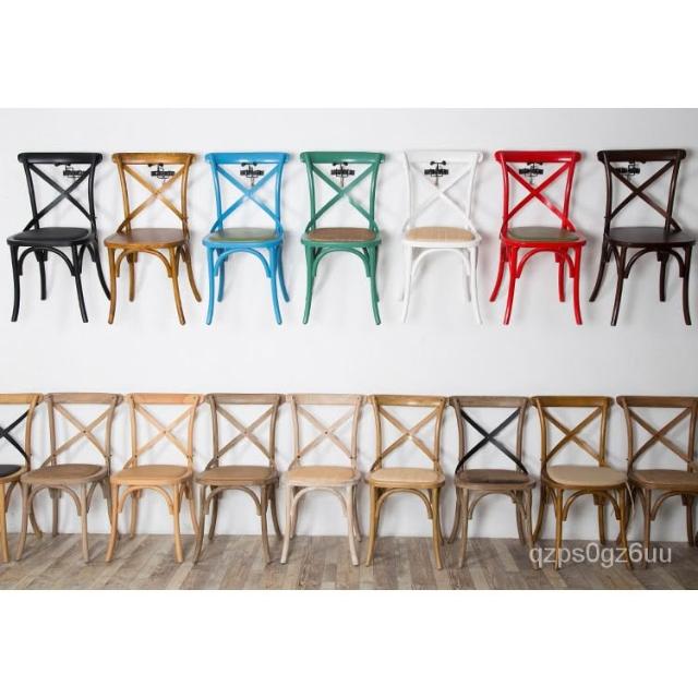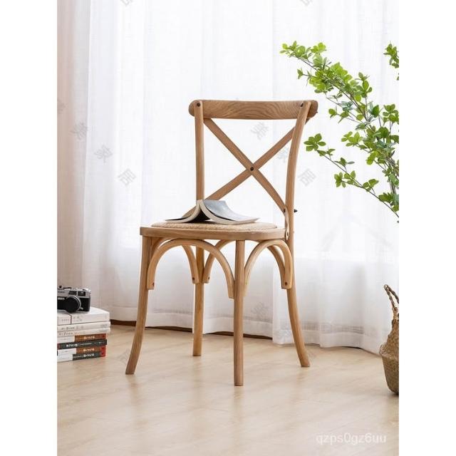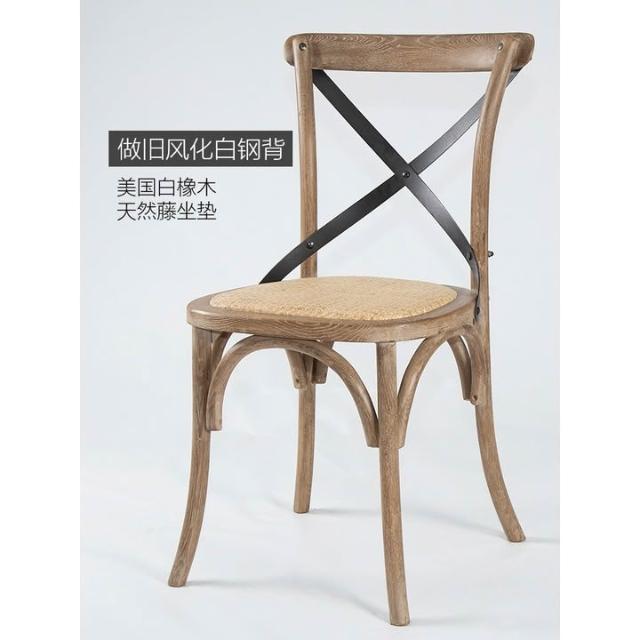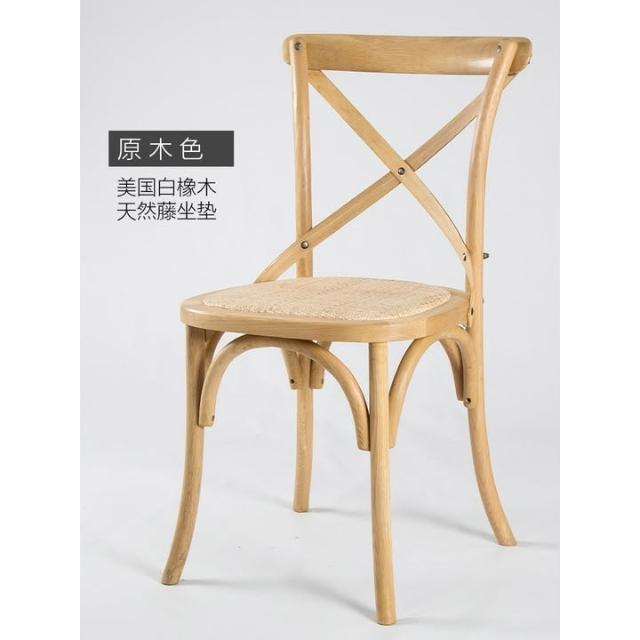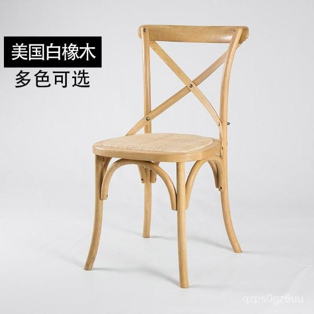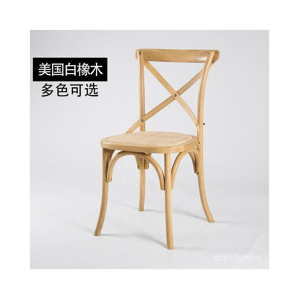 美式餐椅 叉背椅 橡木實木傢具背叉椅複古工業風木椅子酒吧咖啡椅