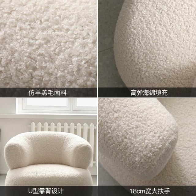 時尚 北歐設計簡約客廳創意U型沙發陽台臥室小白休閒羊羔絨單人沙發椅