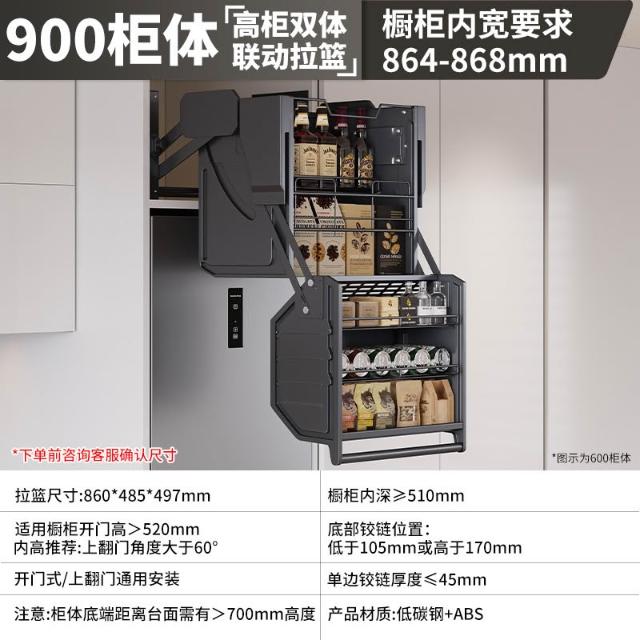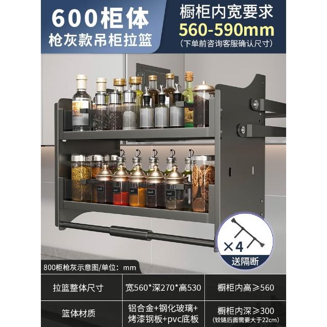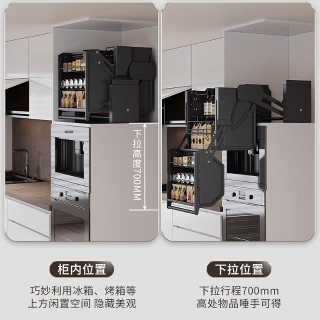 廚房吊櫃升降拉籃櫥櫃 冰箱烤箱上方高櫃 下拉式零食調料收納置物架