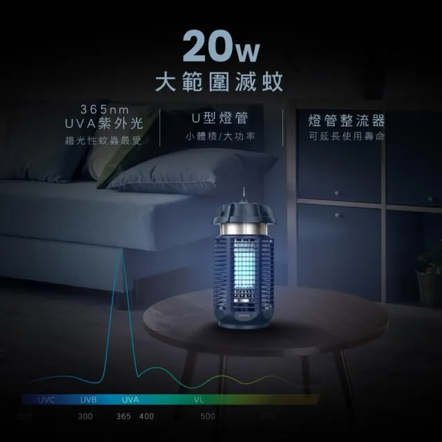 - 特製密集電網,捕殺蚊蟲不漏抓