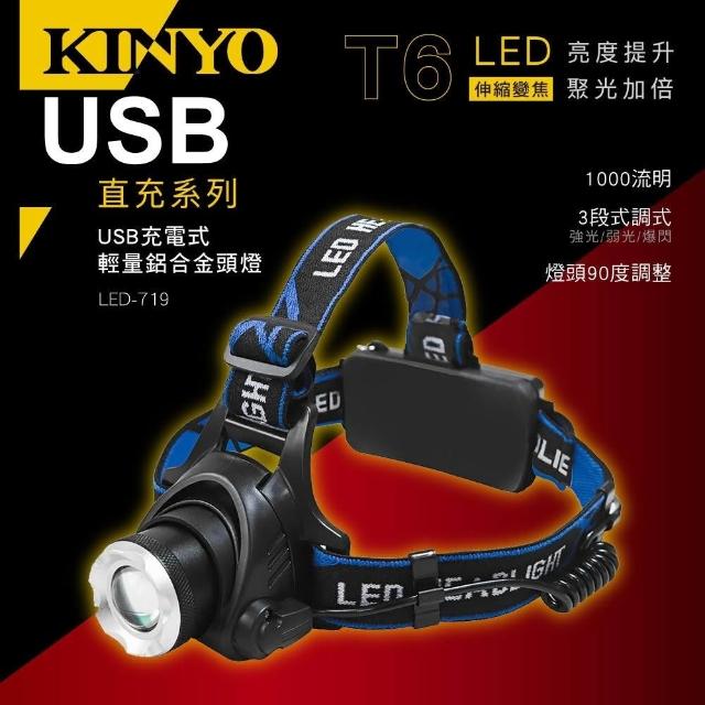 KINYO★官方直營★USB充電式輕量鋁合金頭燈 (LED-719)