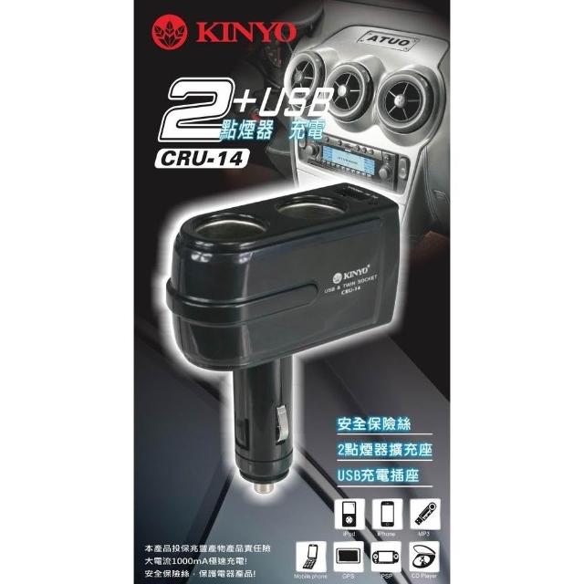 KINYO★官方直營★2孔車用點煙器+USB充電擴充座 (CRU-14)