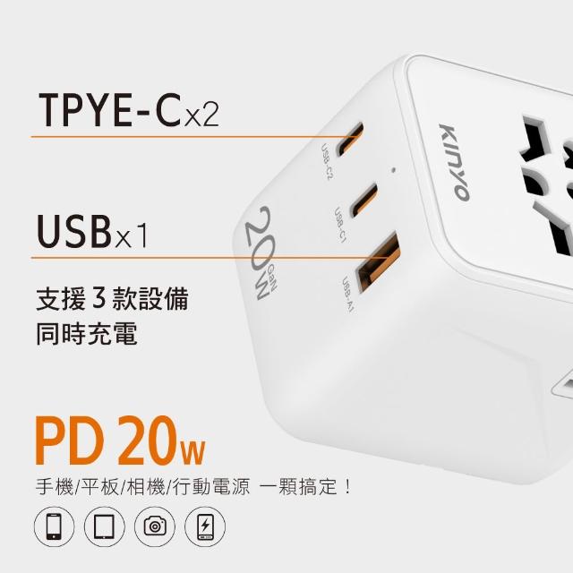 KINYO★官方直營★多合一雙插座萬國轉接頭20W (MPP-3520)
