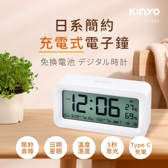 KINYO★官方直營★日系簡約充電式電子鐘 (TD-545)