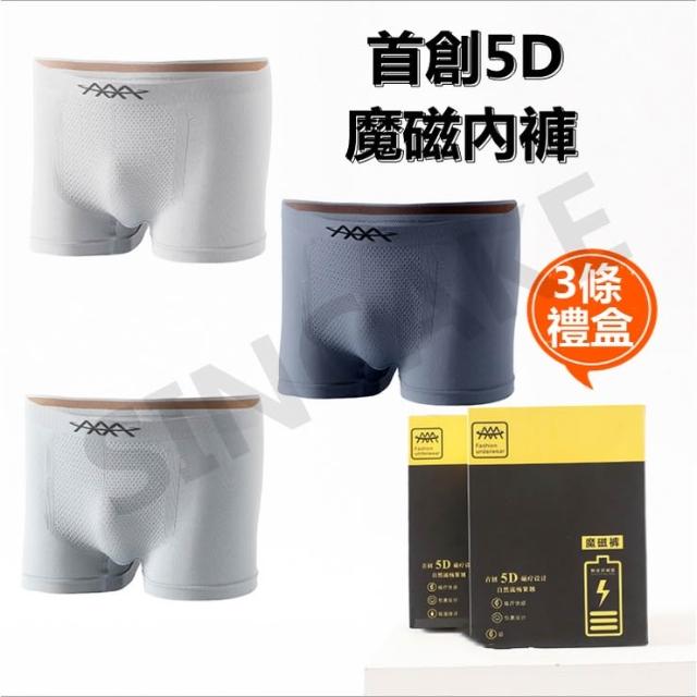 📣台灣現貨🚀爆款5D魔磁男士內褲 純棉四角褲 平角褲 親膚舒適 中腰無痕高彈3條禮盒裝內褲