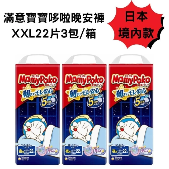 滿意寶寶哆啦晚安褲3袋*1箱(尺寸XXL22片;日本境內)