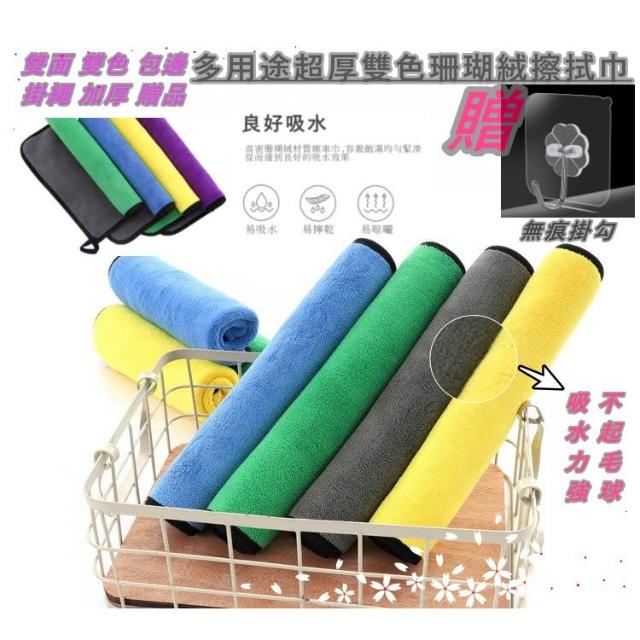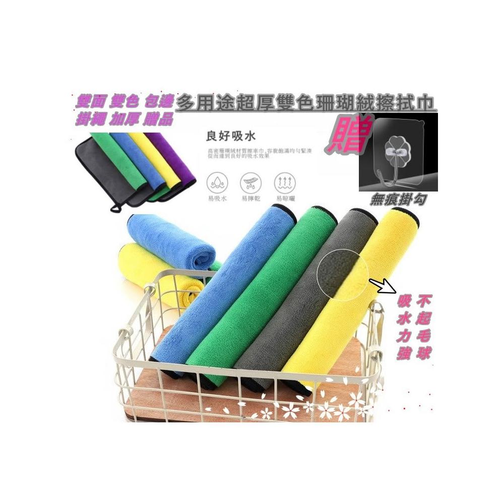 超纖加厚版 車用家用抹布 可掛加厚 吸水雙面超纖珊瑚絨抹布 超厚 雙色珊瑚絨擦拭巾 擦車巾 吸水抹布