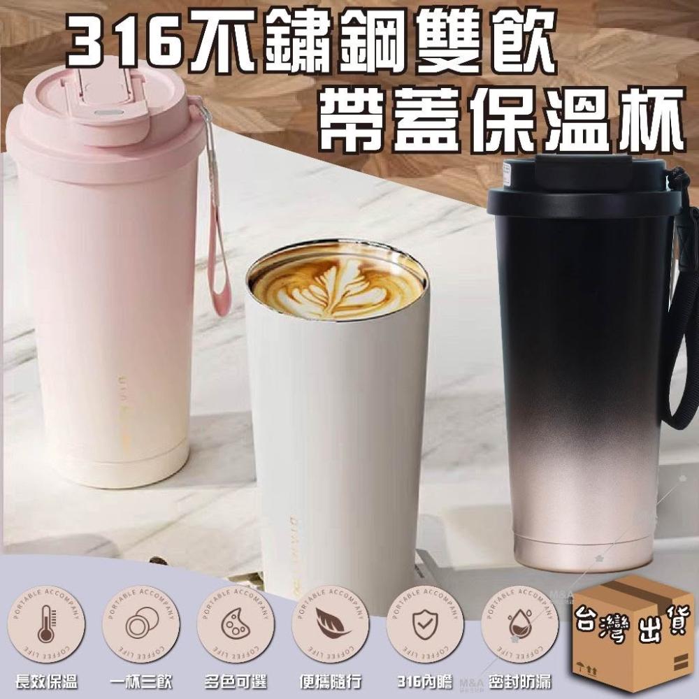 2025新款 520ml 316不鏽鋼咖啡杯 漸變色咖啡保溫瓶 附吸管 咖啡保溫杯 吸管保溫杯 保溫瓶 隨行