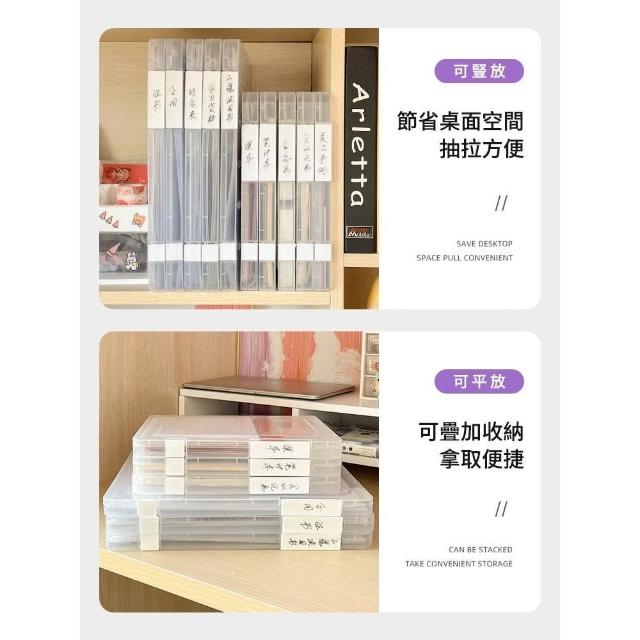 MEEGOO A4 文件收納盒-2入組(文件透明盒 隨意盒 文具收納 單據票據 分類收納 桌上收納 試卷 公文收納)