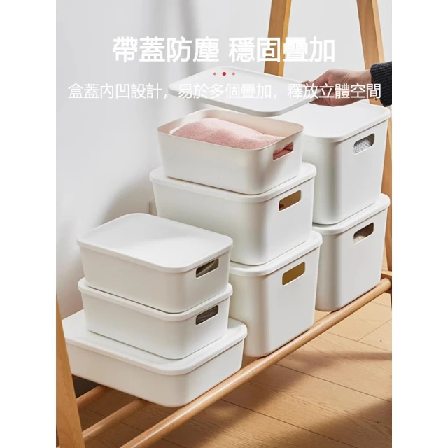MEEGOO 帶蓋防塵日式收納盒 4入組(收納用品 收納盒 整理箱 置物箱 收納箱)