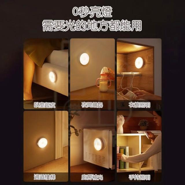 MEEGOO 免釘免插電 LED人體感應燈 強力吸附 USB充電 磁吸小夜燈 玄關燈 櫥櫃燈 小夜燈 感應燈 暖光