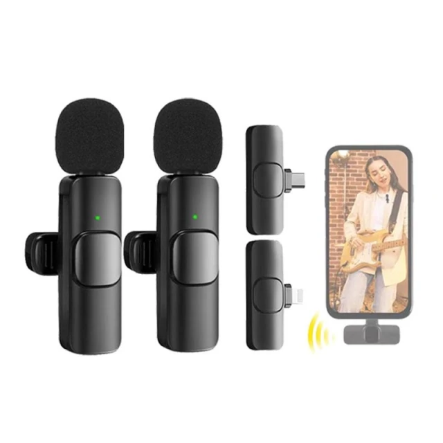 MEEGOO 一對二領夾式麥克風 附無線收音麥克風 智能降噪 錄音麥克風 即插即用 收音麥克風 蘋果 TypeC