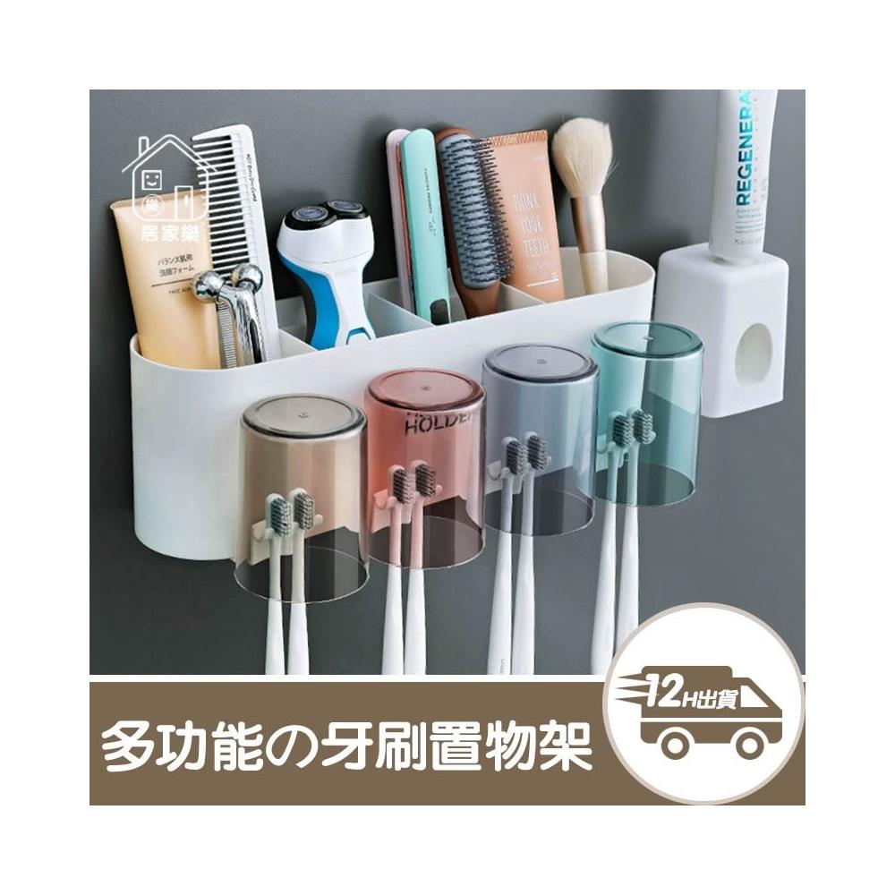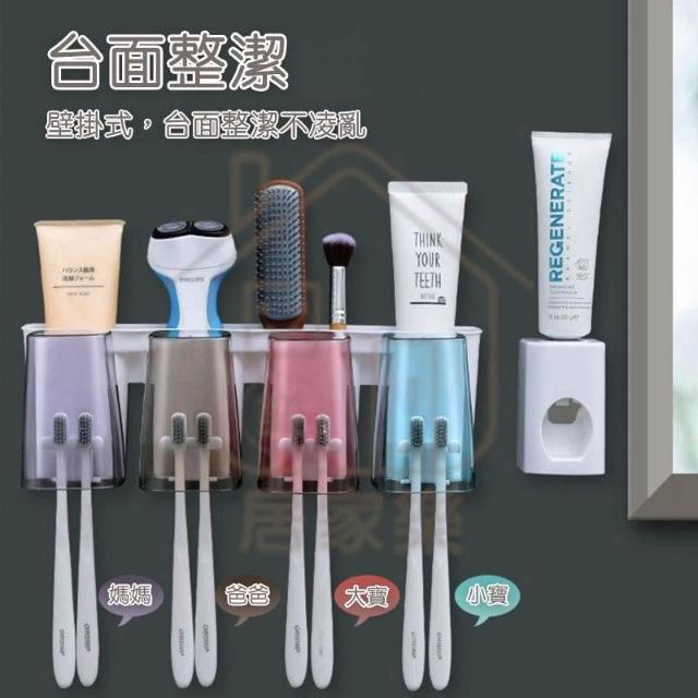 MEEGOO 多功能牙刷架套裝 牙刷架+漱口杯+自動擠牙膏器 北歐風 牙刷收納架 牙刷置物架 免打孔 洗臉臺收納 牙刷 牙刷杯 收納架