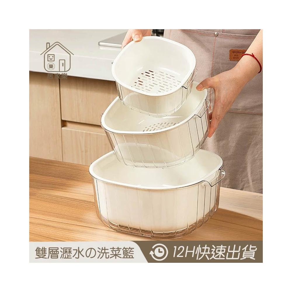 MEEGOO 日式簡約 蔬果洗菜 無印風 瀝水籃 洗菜籃 洗菜盆 水果籃 水果盆 瀝水盆 濾水籃 雙層瀝水籃