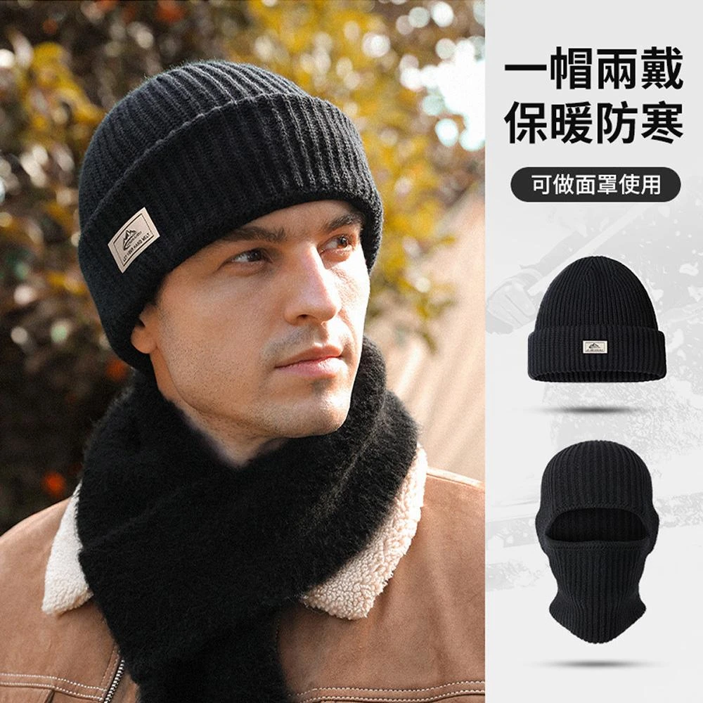golovejoy韓版兩用男士針織帽 男生黑色毛線帽 防風面罩 套頭帽 保暖毛帽 男士帽子 護耳帽 毛線帽