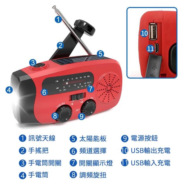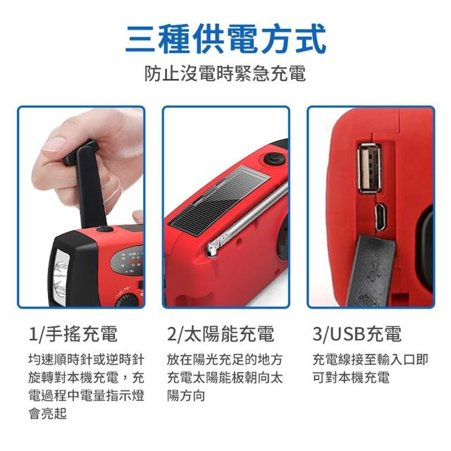 WANGKE防災收音機 (AM/FM收音機 避難收音機 手搖發電收音機 求生 手電筒 照明燈 SOS 太陽能收音機)
