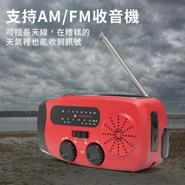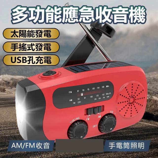 WANGKE防災收音機 (AM/FM收音機 避難收音機 手搖發電收音機 求生 手電筒 照明燈 SOS 太陽能收音機)