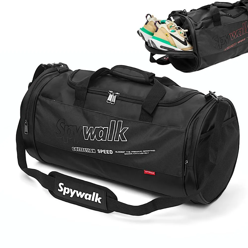 SPYWALK大容量 旅行袋 圓筒包 行李袋 大容量旅行袋 運動健身包 旅行袋 托特包 大手提袋 尼龍旅行袋 獨立鞋袋 (9048)