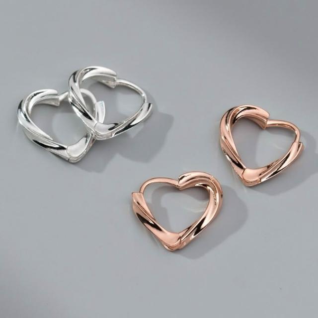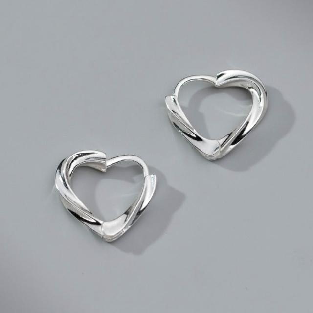Sweet Air 通體純銀 S925純銀 鏤空愛心 Y2329 心型純銀耳扣 純銀愛心易扣式耳環