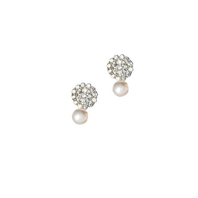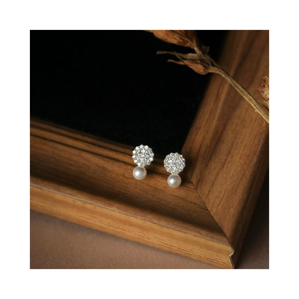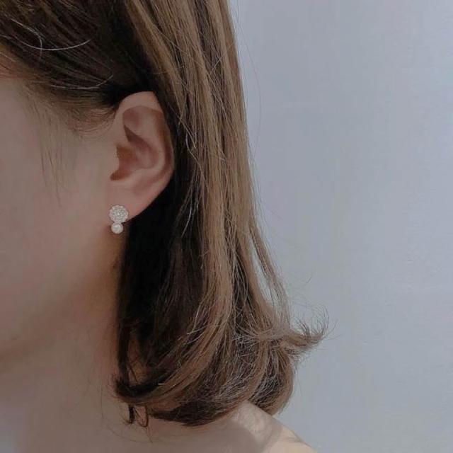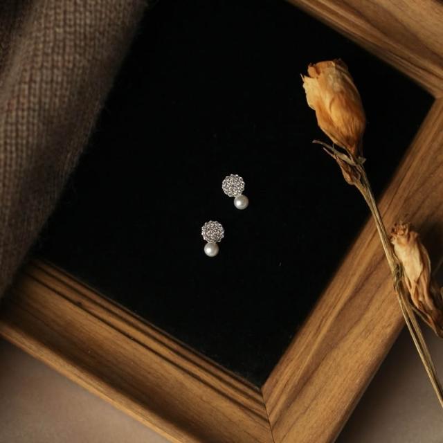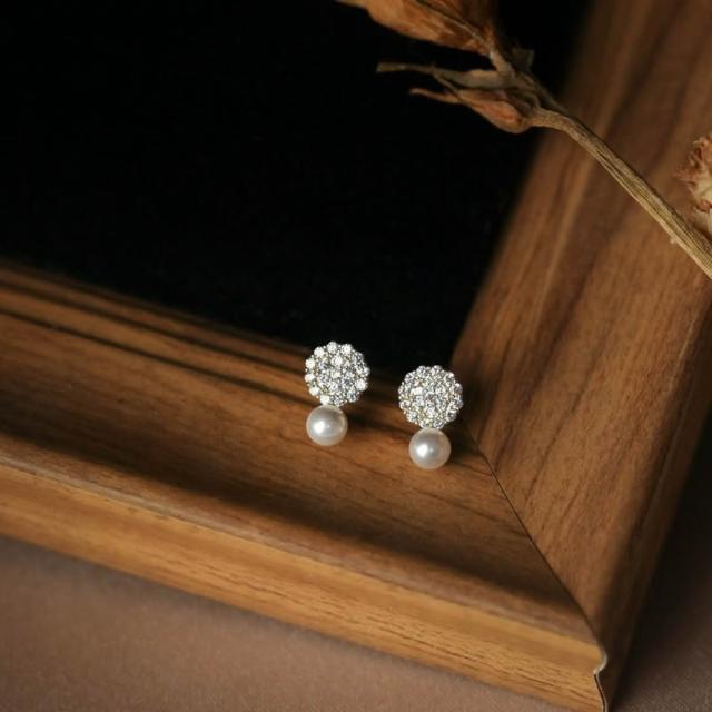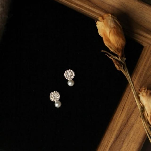 Sweet Air Y0131 小巧滿鑽珍珠純銀耳環 通體純銀 S925純銀鍍14K金 日韓系復古輕奢寶石耳環