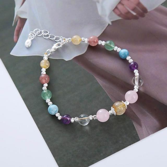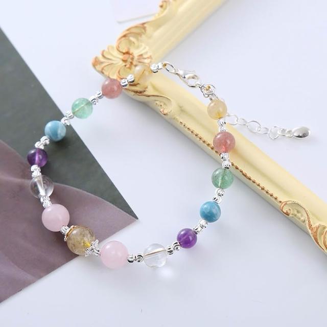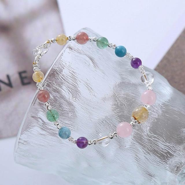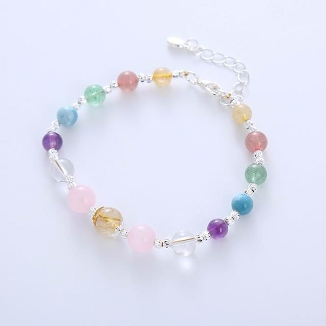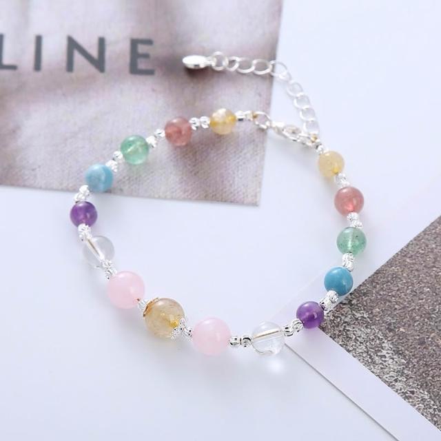 彩色水晶串珠手鍊 M44 銀色手鍊 彩虹串珠 天然水晶手環