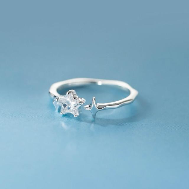 S925純銀 星星戒指 芒星戒指 淡藍鑽/白鑽 抗敏可調節開口戒 不規則戒環設計 Sweet Air M4923