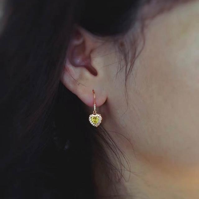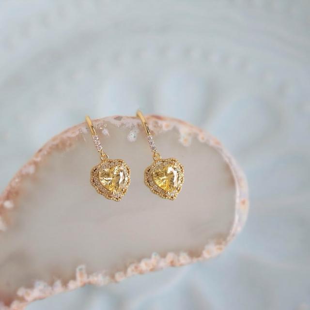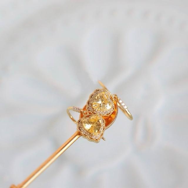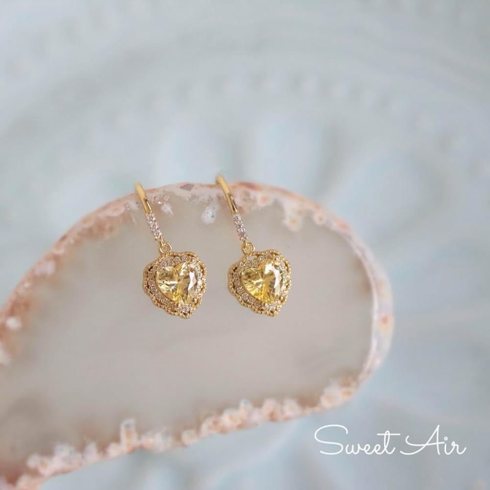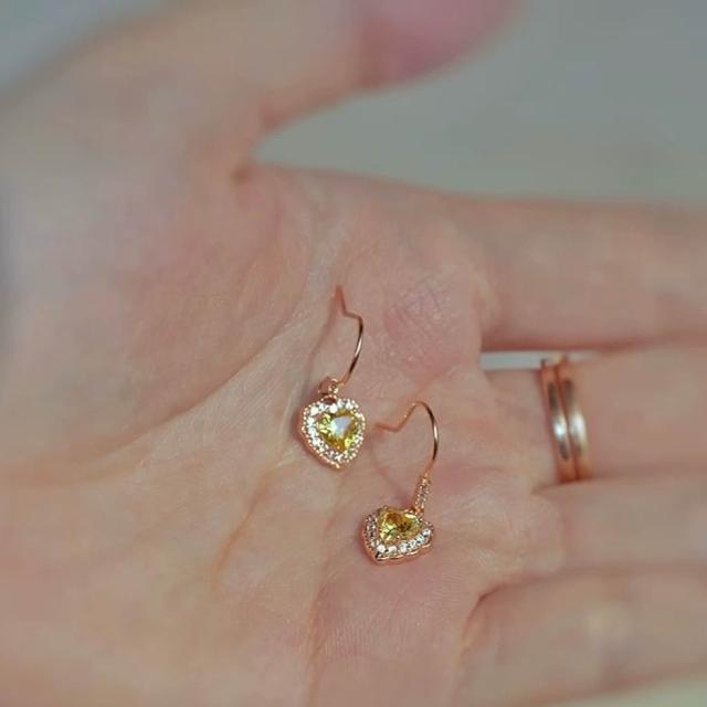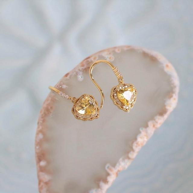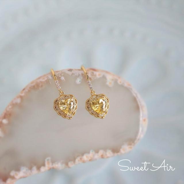 S925純銀 愛心滿鑽純銀耳環 純銀耳勾 M4924 掛式 復古鑲鑽 黃鑽寶石心型耳環 Sweet Air
