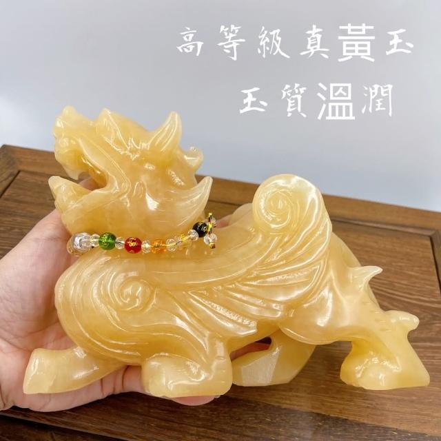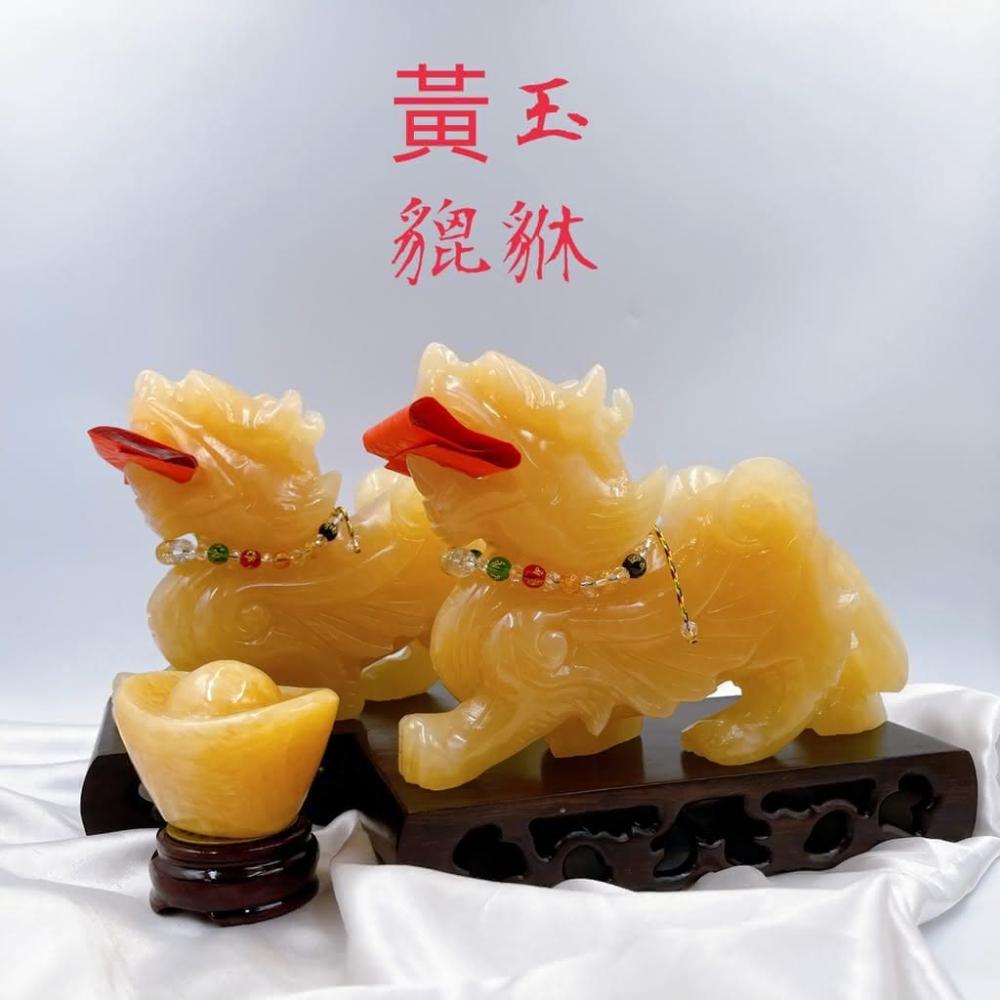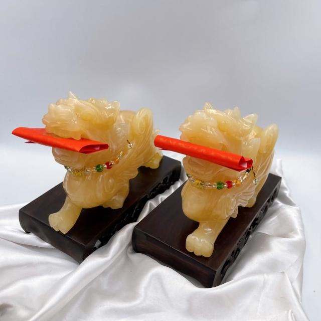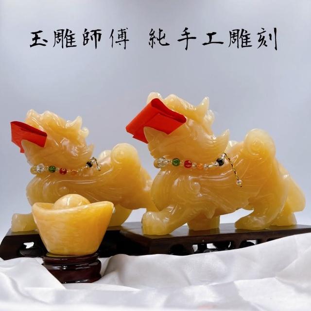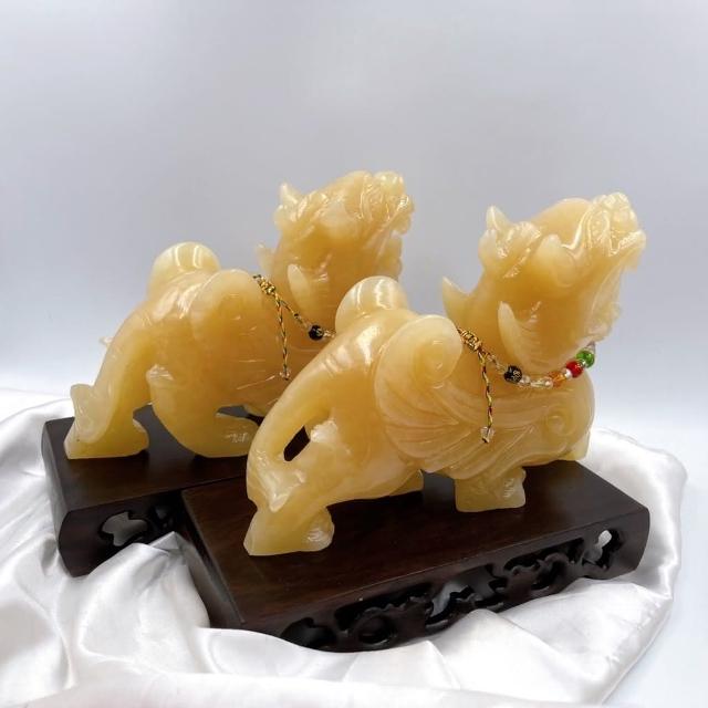 田芯Sweet Heart 田芯精品 開運精選系列 天然黃玉精雕20公分貔貅 含底座 招財咬錢 飛天貔貅 一對