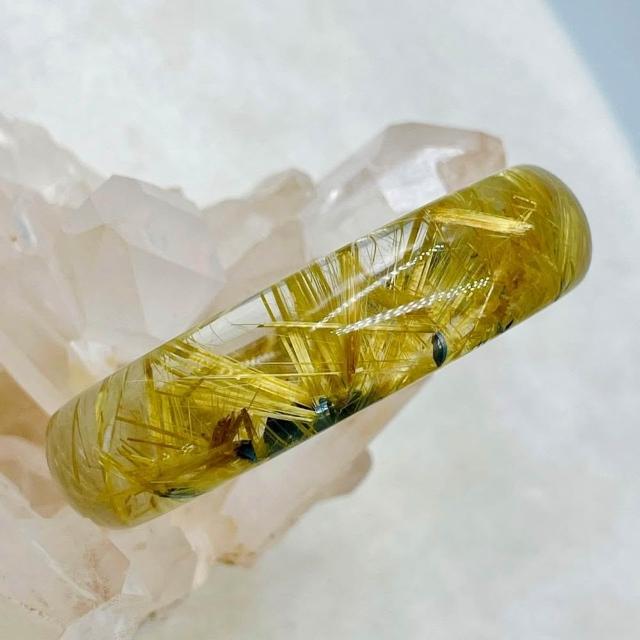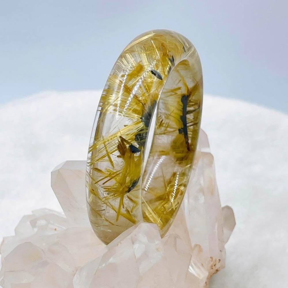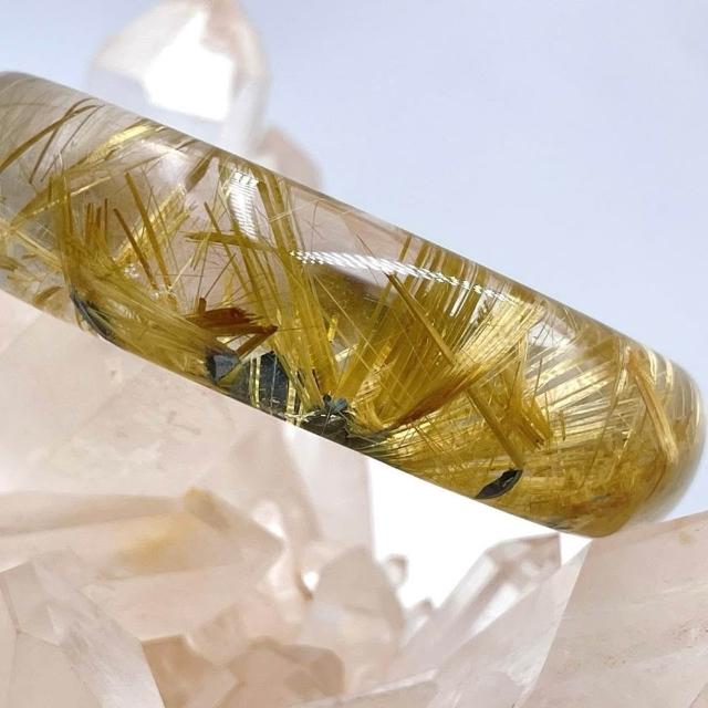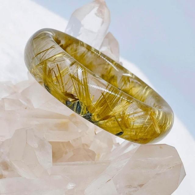 田芯天然鈦晶 寬版手鐲 粗版 收藏級 內徑:56mm 手圍17 現貨 含鑑定書