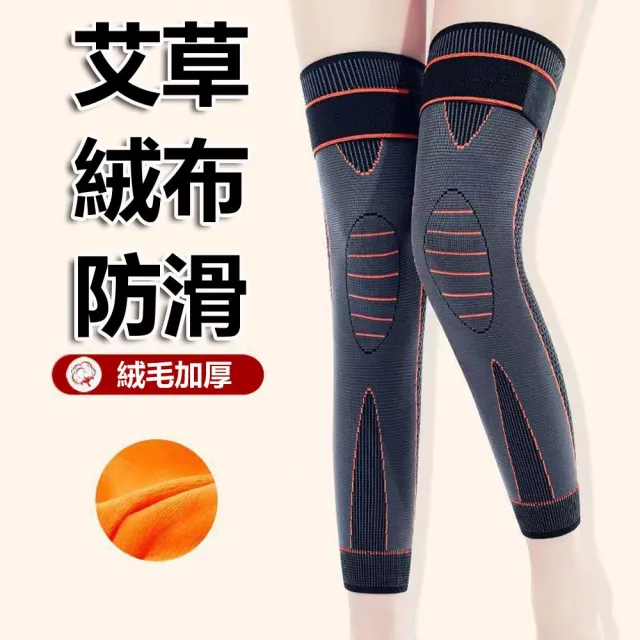 Lococo樂客客-加長型綁帶式艾草自發熱保暖護膝透氣彈力運動護膝-1雙入
