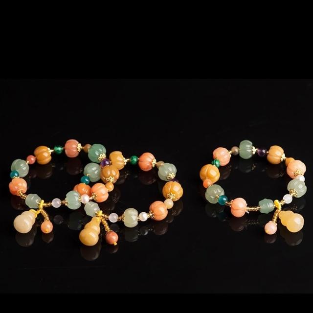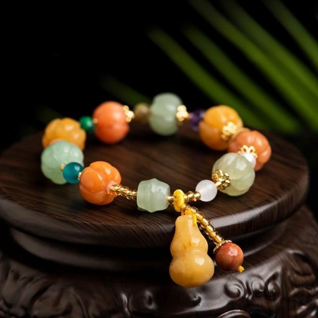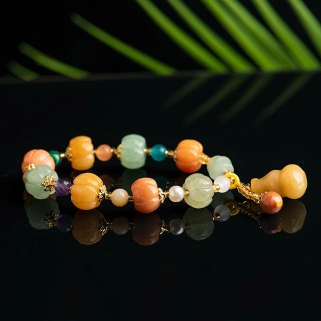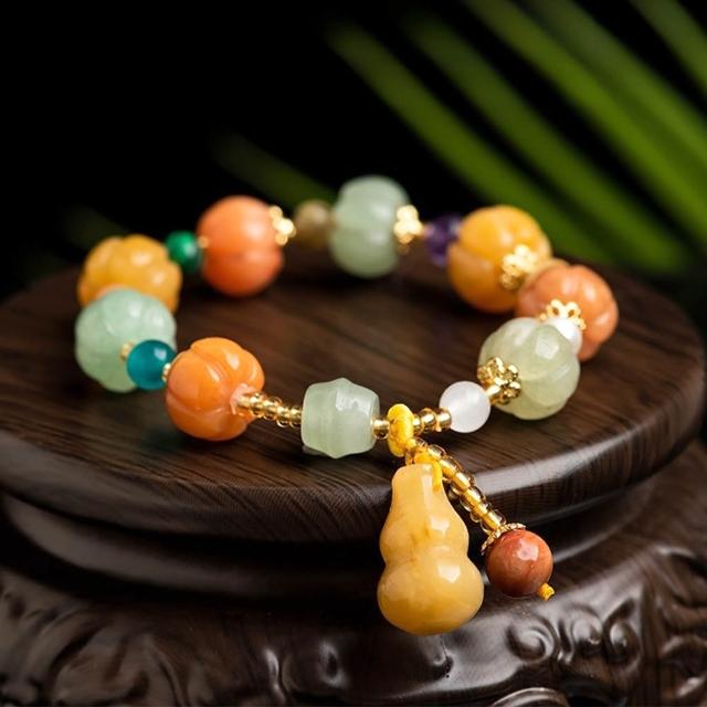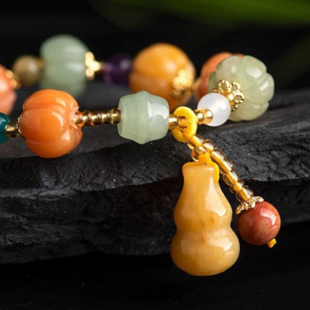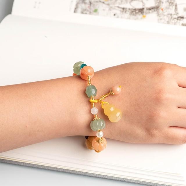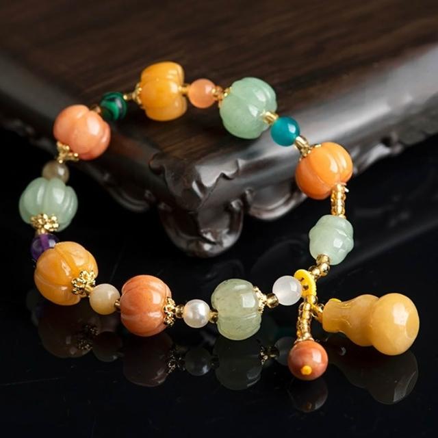 EMMA SUE金絲玉手串 黃玉手鍊 多寶手串 玉石手環 個性百搭 葫蘆 南瓜 禮物 新中式 小眾設計 手工編織 復古風