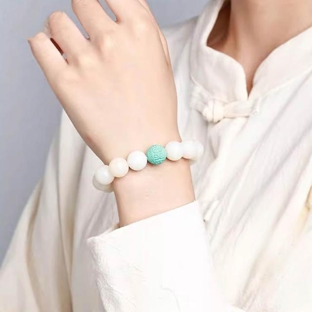 EMMA SUE佛珠 圓珠手串 白玉菩提 保平安 開運手鍊 招財手鍊 招貴人 回紋珠 文玩手鍊 禮物 念珠 手串 手鍊