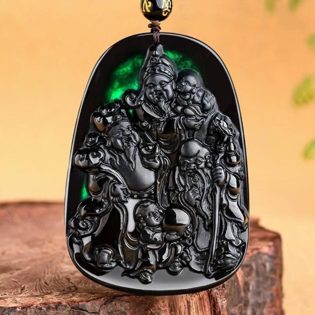 EMMA SUE項鍊 掛件 玉佩 財富 長壽 福祿壽 吊墜 冰種 玉墜 護身符 飾品 手串 項鍊 墨玉 保平安 雕刻