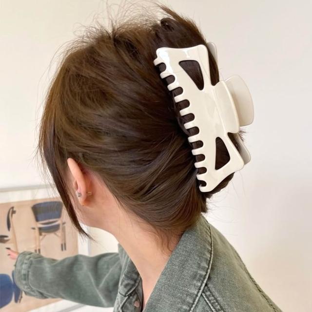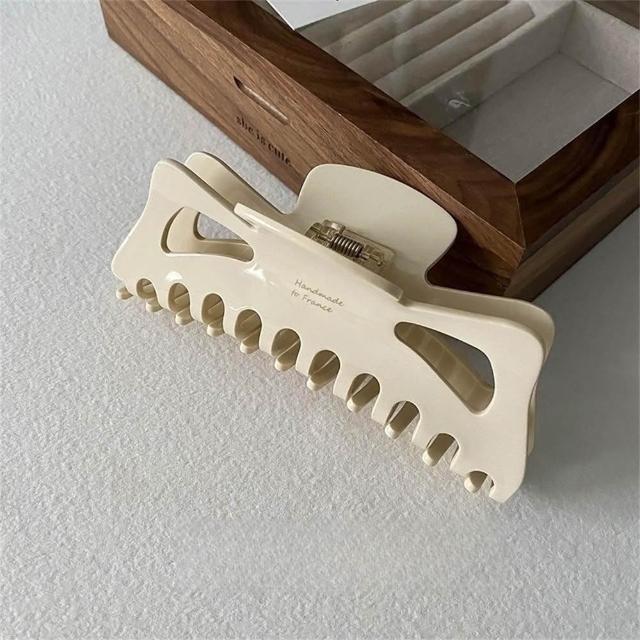 EMMA SUE鯊魚夾 超大號 醋酸髮夾 盤髮夾 抓夾 奶油色 髮夾 夾子 髮飾 頭飾 慵懶風 女生髮飾 髮量多 氣質 法式髮夾