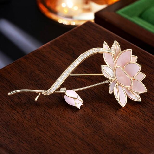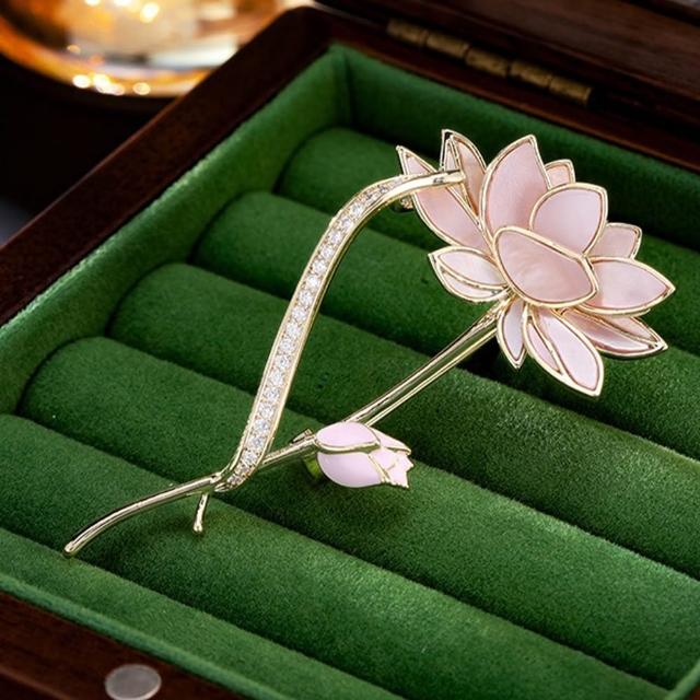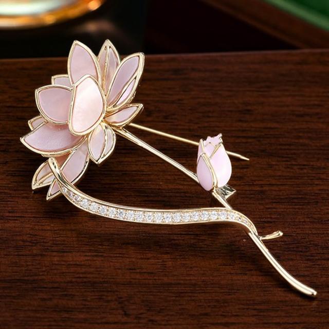 EMMA SUE鋯石 金屬別針 造型胸針 飾品 胸針 配飾 穿搭配件 婚禮穿搭 別針 貝殼蓮花 胸花 別針扣 胸針扣 造型別針