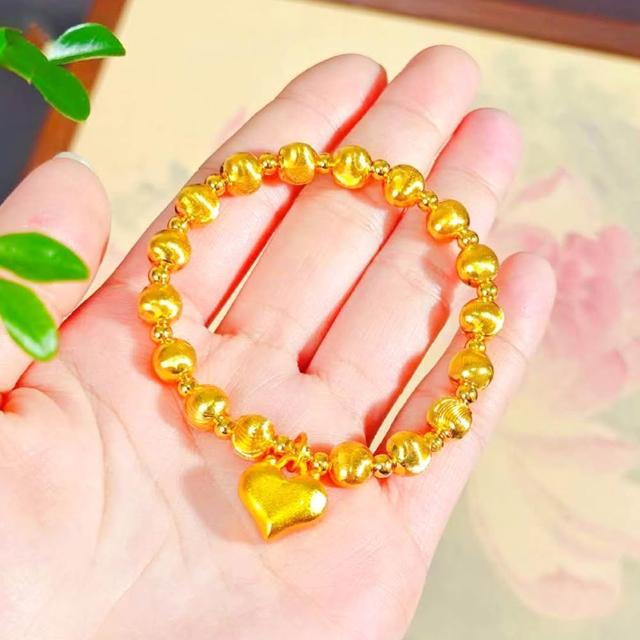 EMMA SUE黃金猫眼石 愛心 沙金手串 飾品 百搭 時尚 手鍊 手串 禮物 沙金手鍊 手飾 招財 送女生 高級感 轉運珠手串