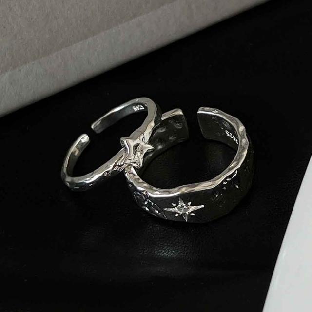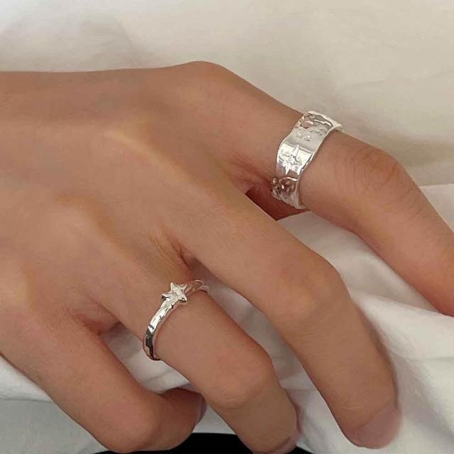 EMMA SUE星星紋理 戒指 戒指 星星戒指 抗過敏 鋯石 設計感戒指 銀戒指 S925純銀 純銀戒指 金戒指 ins風