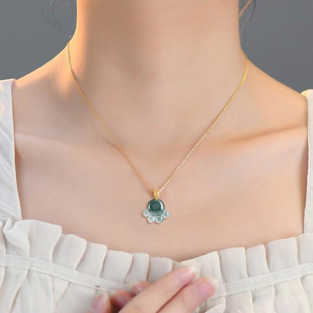 EMMA SUE貓爪項鍊 玉石項鍊 翡翠項鍊 18k金 可愛吊飾 招財納福 閨蜜項鍊 吊墜 禮物 百搭飾品
