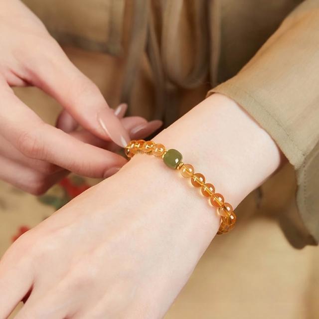 EMMA SUE黃水晶手鍊 和田玉手串 水晶串珠 天然水晶 招財手鍊 本命年 手串 禮物 百搭飾品