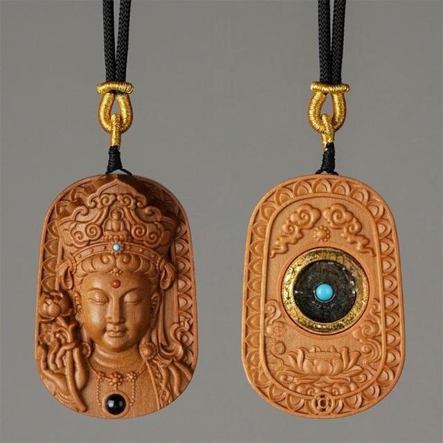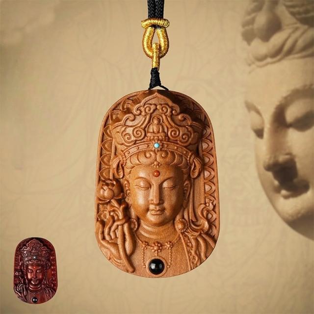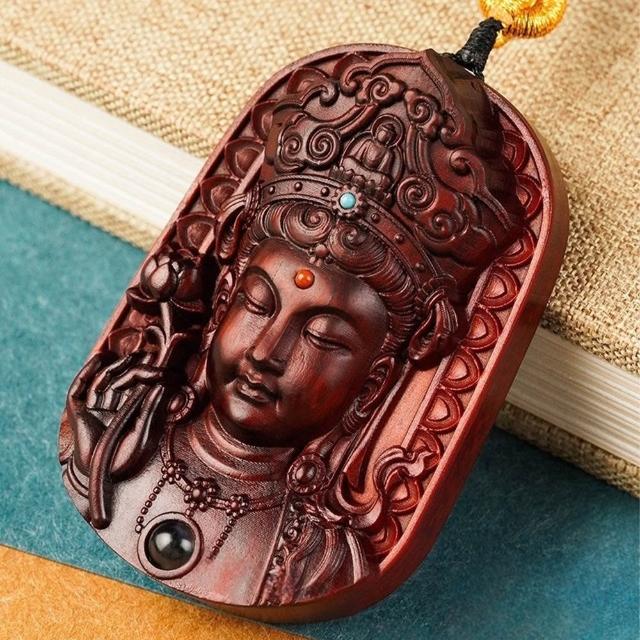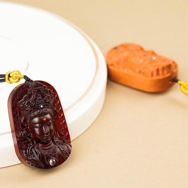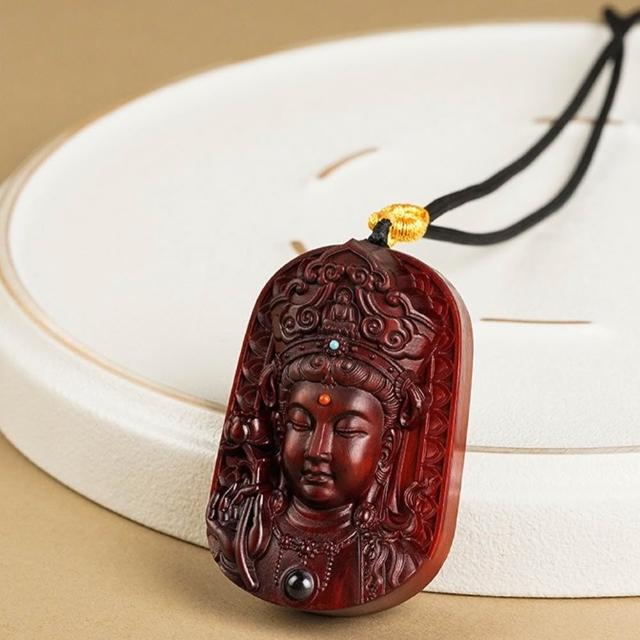 EMMA SUE轉運項鍊 觀音玉墜 紫檀木 持蓮觀音 吊飾 掛飾 掛件 菩薩 佛像 佛牌 吊墜 招財納福 平安符 保平安