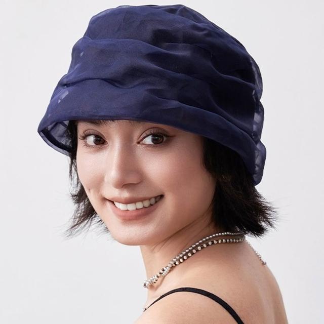 EMMA SUE圓帽 時尚 氣質風 日系穿搭 漁夫帽 薄紗帽 短帽簷 薄款 網紗帽 桑蠶絲 真絲 平頂 帽子女 透氣 女生帽子