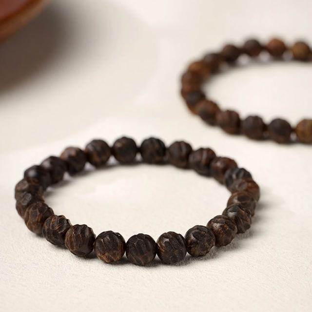 EMMA SUE單圈佛珠手串 8mm沉香串珠飾品 復古文玩 綠奇楠沉香手鍊 沉香手飾